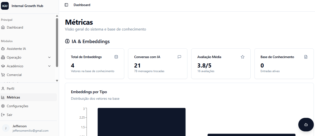 Na prática, isso significa que quando alguém do time precisa de uma informação, não perde tempo procurando em pastas, perguntando para colegas, ou tentando lembrar onde viu aquele dado. Pergunta para o IGU e recebe uma resposta contextualizada em segundos.